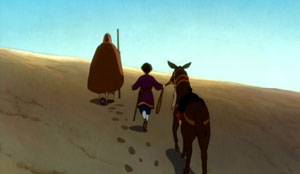 It was back in 1995 that Studio Ghibli released Whisper of the Heart unto its native market of Japan. Directed by the (comparatively) youthful Yoshifumi Kondō, it was a signpost that pointed to a road of change, or at least that's what everyone thought at the time; Hayao Miyazaki himself would go on to allow speculation that his forthcoming Princess Mononoke may well be his final cinematic outing, presumably secure in the knowledge that Kondo held enough promise for the future. Whisper of the Heart wasn't the most typical of Ghibli films, especially to any eyes that consider the Miyazaki classics to be the quintessence of the studio's output. It was a much more placid work than many that had come before and both fantastical creatures and palpable scenes of undiluted delight were in seemingly short supply, replaced instead by a meditative pace and a sense of honest significance placed upon the most mundane of activities. It was apparent that Kondo wasn't a fantastical filmmaker of Miyazaki's calibre, but it was also apparent that he was aware of this and was more than able to work the script he had been provided with to his own style and vision. The future Ghibli was going to be different, it seemed, but that was ok: Miyazaki had given his gifts, and one of the final ones was an heir who promised to bring with a whole host of new and unique presents, each just as special as his forerunner's in their own way. But then, back in 1998, the 47-year-old prodigy would suffer fatally from an aneurysm. Ghibli lost its most promising heir; the world went on to gain Spirited Away and Howl's Moving Castle. For all the splendour of these two films, the Japanese public, and indeed – since Spirited Away's Oscar haul – the world at large, still need to face the simple reality that Hayao Miyazaki won't be around forever. Someday somebody will have to fill his shoes if the studio is to continue, and time is running out. To the family it is, then, dictated producer Suzuki: To the children. The tension between Hayao and his son-cum-director Goro has been quite well documented, to the point where it was manipulated towards marketing. It only takes a single viewing of the film to be able to emphasise with any concerns that Miyazaki may have harboured about his son's directorial ability as, very simply put, Tales from Earthsea just isn't up to the standard of Ghibli's astounding pedigree. Opening appropriately enough upon a setting of a stormy sea, Earthsea's most immediate and initial moments show a degree of promise: the presentation has such a resolutely old-school Ghibli look to it that even the water itself is totally devoid of any obvious CG presence. It's an energetic moment, and the two dragons that then tango in the sky are awesome in both their design and powerful in their animation. The overall vibe is quite dark, but acceptably so and there's even a momentary flicker of a chance that Earthsea could become a sort of spiritual successor to Princess Mononoke, a romantic glimmer of hope that son Goro may have picked up exactly where his father had once considered allowing his own work to conclude. The sad truth, however, is that for all the richness of its original source material (and the source material is vast in its riches), Tales from Earthsea quickly degenerates into a one-dimensional film from the perspectives of plot, direction and even animation. There's no doubt that the movie feels a bit unrefined, although on its own this seems a mite unfair as a criticism. After all, when viewed objectively the same could be said of Nausicaä, a film that has the luxurious benefit of an immediate sense of nostalgia. Earthsea doesn't share such a privileged position. Instead, as indeed Nausicaä must once have, Earthsea has a desperate need to prove itself. It has to tell its tale well and with a genuine sense of caring so as to make any scruffy edges immediately forgivable, so that it may some day vindicate its own rose-tinted lens. So that, as Toshio Suzuki himself argued when appointing his director, true inspiration can shine through in such a way as to make any lack of experience insignificant. The plot is of a confused prince, Arren, on the run after murdering his own father (although the film seems to omit any clearly communicated motivation for this) and left at his own death's door until being taken under the wing of the Archmage Sparrowhawk. From here on a lesson on the importance of all life is taught – preached with a heavy hand, even – and the story quickly becomes bogged down in the most basic rescue operations as it runs a not-grey-enough line between good and evil. Too much is expressed through extended dialogues and too little is communicated through character action. Character development seems both rushed and ambivalent, by and large the film ends up verbally dictating its themes rather than allowing its audience to simply feel them out for themselves. Plot strands are left all over the script-editing floor, leaving the whole experience feeling largely and un-intendedly arbitrary. Overall, it's remarkably simplistic to the point where it will likely shock anyone who has read any of Ursula Le Guin's work. Indeed, it's entirely understandable that the author herself was ultimately dismayed by the picture. Goro's inexperience spreads further still. There are some shots and examples of editing on display here that break some of the most fundamental rules of filmmaking. Rules are perhaps made to be broken, but it always works best when the one breaking them knows what he or she is doing and just how to go about it. Goro, however, just seems to lack a complete, rounded knowledge of everything that needs to be done. There is more than one occasion where a series of camera angles show a character moving through a location with no proper sense of orientation, for example. The sense of location is hindered as a result, and even if the sort of confusion imparted had been intentional (which i