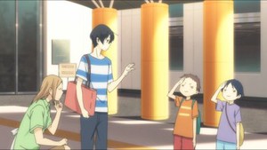 This section of the episode is good for visuals in general. Not only will some viewers doubtlessly thrill at shirtless Ohta – who we also get to see with his hair down – but before he starts floating, Tanaka-kun shows up at the pool with an inner tube featuring a kitty face, which for some reason is highly amusing. He almost gives it up when he gets the bright idea to use Ohta as a flotation device, which makes for another very funny image. Add to this some of Ohta's dryer comments about how good Tanaka looks in an inner tube before nixing the Ohta-as-flotation-device idea and this summer segment is one of the show's better ones.