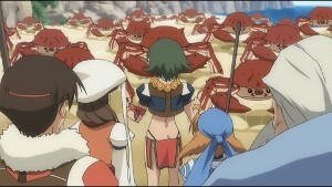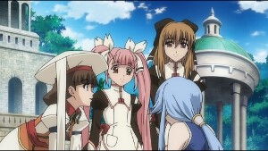 Tears of Tiara also continues its good run with some wonderful visual details that really help it stand out to most other titles. The characters are dressed (for the most part) in vibrant practical clothing, and the background art tries to stand out much more than what we're used to. This also stands true for the action scenes, which are once again a step above the norm. Although there isn't actually much in the way of any sort fan-service material (a bit of a surprise actually) the costumes of some cast members do certainly act as a reminder of this series' origins.
