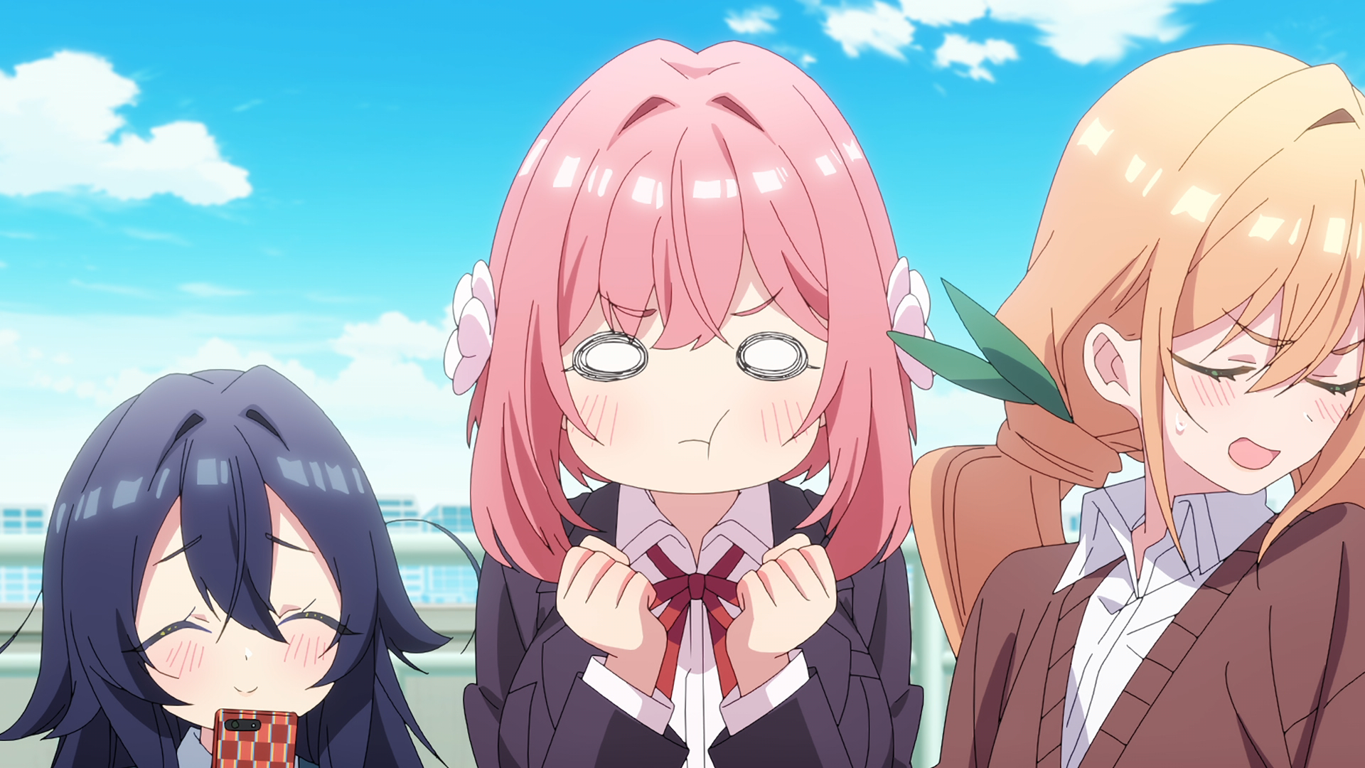 Thankfully, just because Nano is defined by efficiency and is the top student in their grade, that doesn't mean she's smart – at least not in the way that matters for this show's comedy. Just as the other girls take their gimmicks to their ultimate extremes, Nano takes pure logic to its illogical endpoint. True to her A.I. namesake, she'd rather copy a textbook diagram than make and record her own observation in science class. In a scene straight out of Koe de Oshigoto she'll slobber all over our hero's finger to “disinfect” his cut faster than going to the nurse's office. She'll even nonchalantly crush the dreams of children everywhere by pointing out a mascot character as a person in costume. Despite her eternally stoic face, she's just as much of a wacky weirdo as the rest of this polycule, and will doubtlessly fit in perfectly with Rentaro's eclectic gaggle of girlfriends in her own way.