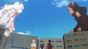 Delightful? Oh, for sure, but that's just par for the course now that The Great Jahy Will Not Be Defeated! is back on its a-game, especially in the back half when Jahy confronts that strange, glowing entity, who's actually not the Demon Lord, but is an entity of light that happens to look like one very hungry doppelganger. Thankfully, the buck doesn't stop there: episode 19 digs in a bit more to this newcomer, making for a really delightful episode that sets up a nice parallel to the Demon Lord, who's still a bit MIA from the series by and large… until now because y'all: we get an epic fifty-foot woman fight that's Demon Lord v. Demon Lord but using Light (I believe her name is Su) and it's actually solid action in a series that's largely divorced itself from drawn out action scenes. It's also incredibly well done, animation-wise, lending to some pretty impactful Jahy character moments.