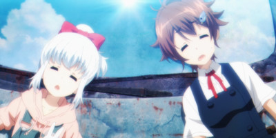 Where Girl's Last Tour is a bit more abstract, set in a nameless future megalopolis built on multiple enormous layers, and with two main characters whose designs err more towards the squishy moe-blob end, Touring After the Apocalypse is significantly more grounded. For one, it's recognizably set in a future Japan, with each episode named after the towns and cities the main characters explore. It's also vibrantly alive, to the point of color-oversaturation. Every crumbling building overflows with searingly verdant vegetation, while animals of all shapes and sizes have colonized the empty streets, gardens, and waterways. This is post-apocalypse by way of vacation picture-postcard imagery.