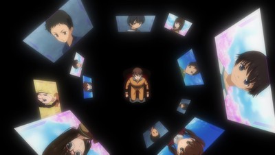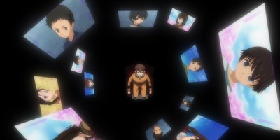 Hanasaki's unsurprising abduction/adoption by Twenty Faces is followed by an equally by-the-book mental torture session. Tied to a chair in a dark room, the now not-so-genki teen is forced to face his true self like many a troubled young anime character before him, many of which had a lot more to say about the human condition. Casting himself in the role of the savior in both dialogue and visuals, Twenty Faces tries his best to convince Hanasaki of their shared fate and nature in an overly dramatic charade.