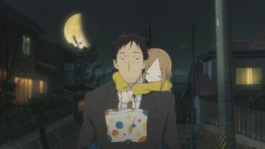 It's not too often you come across a title that truly can call itself a 'slice of life' anime. Many come close, but they always slowly undo themselves in different ways – relationships become less believable, comedic and depressing moments constantly appear forced or magic and the supernatural eventually rears themselves itself into the equation. Usagi Drop on the other hand has none of these. It is simple in concept, small in scale and is never afraid to run at its own pace. It is the raw no frills story of a man and a young girl learning to become a family together and it is guaranteed to move you in way rarely done before. Daikichi Kawachi is a very complacent 30 year old bachelor businessman. He works long hours, owns little and is the best there is at his department. While attending the funeral of his grandfather he comes across 6 year old Rin, a shy girl who the family oust as the love child between their grandfather and his mistress. With no one willing to take care of her, Daikichi goes against his principles and decides to take her home with him. From here we get to watch as the pair deal with everyday life, milestones, and relationships, all whilst growing to be more of a family with every step. It's not all highs however, but neither is life. Sacrifices might need to be made, relationships might need to be repaired, and you may even have to put your life on hold for someone. These things can happen, and Usagi Drop makes sure you feel for the cast every step of the way when they do.