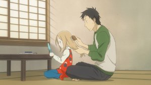 One thing that certainly might draw a bit of criticism however is the visuals. The series randomly switches at times between simple lightly coloured images to an even more child-like water-coloured palette. It's an odd effect, but luckily one that doesn't draw too much attention from what's happening on the screen. The character designs by Yuu Yamashita are also rather plain and simple, with some of the cast such as Daikichi looking especially less attractive and flat. It's certainly a look that needs to grow on you. As with the visuals, the audio in Usagi Drop is a very simple affair. Background tunes are basic, low key, and rarely consist of more than two instruments. The music also rarely leaves a pre-set volume, happy to let the actions and dialogue do the hard work. Siren's release of Usagi Drop is subtitle only, but don't let that be a disappointment as Japanese cast does a wonderful job. Ayu Matsuura's portrayal of the cutesy Rin is very good and is in wonderful contrast to Daikichi's much lower and more straightforward voice by Hiroshi Tsuchida. The opening theme "Sweet Drops" by PUFFY is a lovely catchy tune that works well with the ending song "High High High" by kasarinchu, a more downbeat and yet just as catchy guitar tune.