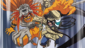 There's a scene in this episode of Ushio & Tora that depicts the scale of the Hakumen no mono well, as a dozen yokai crawl on its chest like so many ants. It really drives home that it won't take two people to defeat this monster, even if they do have magical weapons and armor—it'll take everyone Ushio and Tora has ever known to get the job done. Ushio & Tora has essentially been documenting this final battle with the Hakumen no mono since episode 33, but it doesn't feel slow because there are so many characters to juggle, and at this pace the show succeeds at making us resonate with each of their stories. While this episode's visual quality was noticeably lacking, its character development was strong.