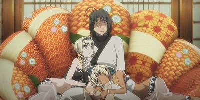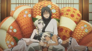 So if you guessed that this week would be another three minutes of story stretched to twenty by fanservice and bad jokes, congratulations, you win the booby prize! (And what a wealth of boobies it is...) Following Princess Anju's staged kidnapping, Munechika and Oshutoru cover the little brat's misdeeds by claiming that Haku led the charge to rescue her, earning him an audience with the emperor himself! So apart from those weird snippets of Oshutoru foreshadowing, episode 11 really was surprisingly important for moving the story along, right? Well no, not exactly.