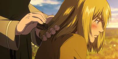It doesn't even seem like Thorfinn understands what he's about to do. Yes, he tells the woman and her daughter to run before he races off to light a signal fire, bringing a wave of heartless murder upon the people who saved his life, but the real sucker punch for both Thorfinn and the audience is the look of utter fear and betrayal in the English mother's eyes, which forces Thorfinn to reckon with how far he's strayed from his father's values and the love of his mother and sister. Thorfinn isn't just a lost and scared boy being forced to fight alongside his father's killer just to survive; he's now complicit in the slaughter that Askeladd's men commit for the sake of profit and glory, which makes him a much more complex hero that's also much harder to root for.