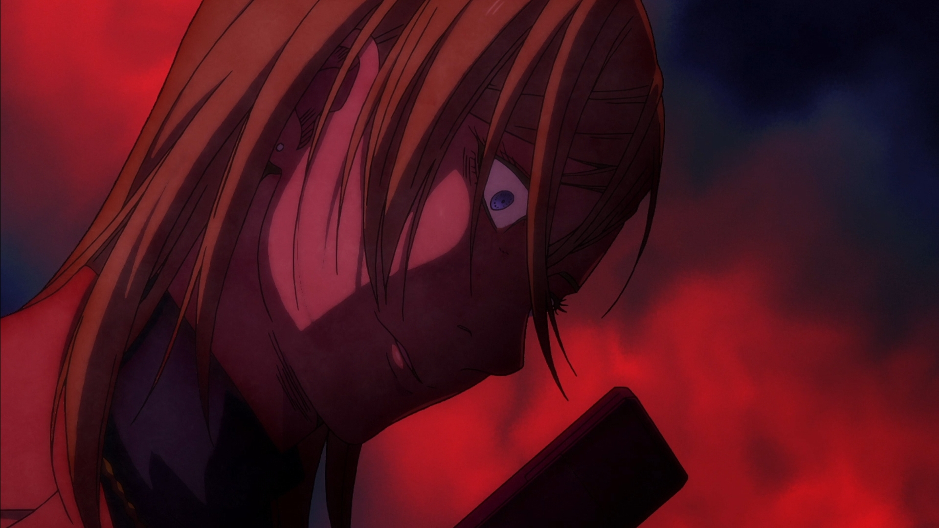 This final apartment scene is the highlight of the episode, because we see Minare falling back into the old intimate routines of their relationship, even though she doesn't trust Mitsuo for a second. It's complex and compelling writing that doesn't resort to cheap drama or artificially heightened romantic tension. A lesser show probably would have gone for a more flirtatious and sexual rapport between the two, but most of the pair's dialogue is framed by Minare laying Mitsuo's head in her lap and cleaning his ears (a Hiroaki Samura staple, if Blade of the Immortal is any indication). It's probably the most tender seeming and open we've ever seen Minare be, and it makes her state-of-mind from back in episode one that much more relatable. She really loved this guy, once.