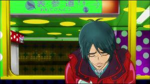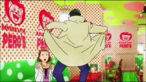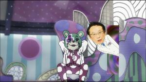 An oversized green bear mask hides the blond hair, however a sleazy stubble somehow sprouts from its chin. If the polka-dots that have invaded the entirety of Tokyo's aesthetic as if a yellow bikini weren't clue enough, then Irabu himself is absolute proof that this show is working hard to earn its experimental badge. Taking the form of three routine external appearances, Irabu switches between crude, effeminate and childlike on the whims that drive his function in each isolated story. Seeing to eleven different psychiatric patients over the course of eleven episodes, Irabu may be an eccentric character, but his role is typically that of a guide; the unorthodox nature of his methods primarily serve to add interest to each individual condition he comes across.
