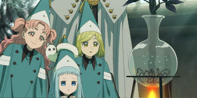 The return of the Brimmed Cap and the demonstration of why teleportation magic is forbidden juxtapose well with Coco's joy and wonder at visiting the witches' town. There's so much that's fascinating all around her, from the casual conversations about magic (magic to make a skirt fuller sounds like a great way around layers of petticoats!) to the various styles of caps adorning people's heads. By the time they arrive at Nolnoa's shop, Coco seems to feel like she's at Disney World. Magic, to her, is still wondrous, which sets her apart from all of the other witches. Even Tetia's perkiness isn't quite the same as Coco's unvarnished awe, although she and Richeh seem equally interested in Nolnoa's demonstration of how ink is made, which is a nice way to show that they're both still learning themselves. But Coco's new understanding of magic sets her apart from her fellow apprentices in that her thinking is less rigid. Sure, she doesn't know how cruor is made or what a quire is, but that very ignorance allowed her to find a way to pass a test that should have been beyond her. Agott said that she doesn't like people who can't do what she does, but how will she feel if Coco turns out to be able to do things she herself can't?