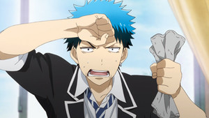 Much like in the first episode, the series seems to be in a hurry to work through its less original material. There's a routine early on where Ito keeps walking into the room right as Yamada and Shiraishi are about to kiss, and the show sprints through it instead of dragging the joke out. The pace calms down more once Ito starts telling anyone who will listen that Yamada and Shiraishi are an item. Yamada's reaction to the situation is a bit unexpected; rather than flipping out over someone spreading rumors about him, his concern seems to be that Shiraishi's reputation will suffer from being associated with him. For a guy who's supposedly the dumb delinquent of the series, Yamada seems genuinely invested in doing right by the people around him. Well, either that or he just has a crush on Shiraishi.