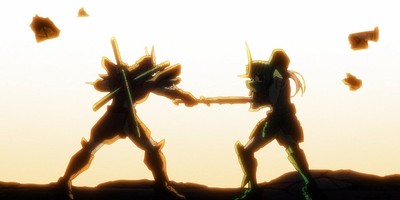 The fun of the presentation really ups things as the storytelling of Samurai Troopers gets a bit more back on track this week. There's no rock song this time, but the structure and direction can commit to moody when needed, like Nasti being thrown in the brig, and dramatic enough at a moment's notice, like when Gai just chops the heads off all of Shion's former teammates. And Gai's deployment of Platinum-Games-style slo-mo counter-attack time is a pretty sick inclusion to jazz up the big fight here. Samurai Troopers looks like it's going to continue speedily shaking itself up into the next episode, so I hope this week's entry was a progenitor of it, knowing how to better wield that approach, with more controlled chaos than it's displayed in previous weeks.