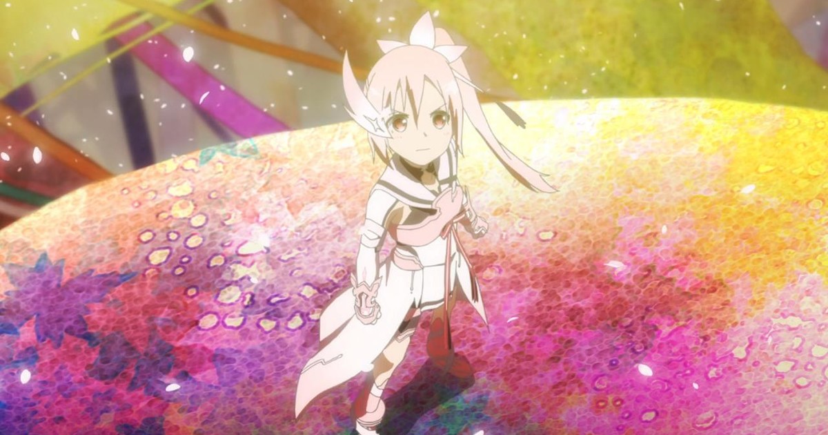 In a version of Japan guided and protected by a godlike mystical tree called Shinju-sama, Yuna Yuki is part of her middle school's Hero Club, which also consists of Mimori Togo (her wheelchair-bound neighbor/best friend) and sisters Fu (the elder) and Itsuki (the younger). Under Fu's direction, the club pretty much functions as a service club, as they do things like assist other clubs, find new homes for kittens, and entertain young children. It's a comfortable, carefree existence for all but Fu, who knows something the other club members don't: that they were all recruited on instruction from the Taisha (a shadowy organization devoted to supporting and carrying out the will of the Shinju-sama) because they showed “high aptitude” as potential actual Heroes. That comes to a head when the prophesied attack of alien Vertexes commences in the Hero Club's region. The four girls find themselves transported to a barrier world where, if they have the will to fight, they can use special smart phone apps to transform into Shinju-sama-empowered magical girls, in which capacity they will combat the Vertexes who threaten to destroy their peaceful world. All four girls – even Mimori! – eventually take up the challenge, and they are soon joined by Karin Miyoshi, a fitness-obsessed girl who, unlike the others, has specifically trained for this role. |