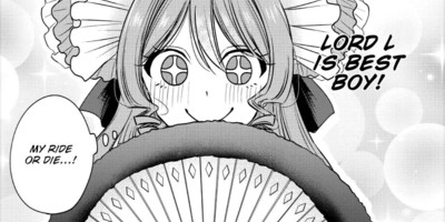 The isekai victims in this case are Misora and Eru, AKA “Lord L.” Back in Japan, Misora was producing an otome game and had just managed to get her favorite boy band to agree to sing the opening theme when she saw on the news that the group had been in a car accident on their way to her office. Panicking, she fell down the stairs, and when she opened her eyes, she was in the body of Sophia, her game's heroine…on the bad end route. But no sooner does she arrive at the enemy nation she's being married off to than she recognizes the prince as her bias – L, the band member with a caustic, domineering character. Needless to say, he's not like that in real life, and part of the thrust of the story is how Misora has to learn to see him as Eru, not L, even as they both adjust to their new circumstances.