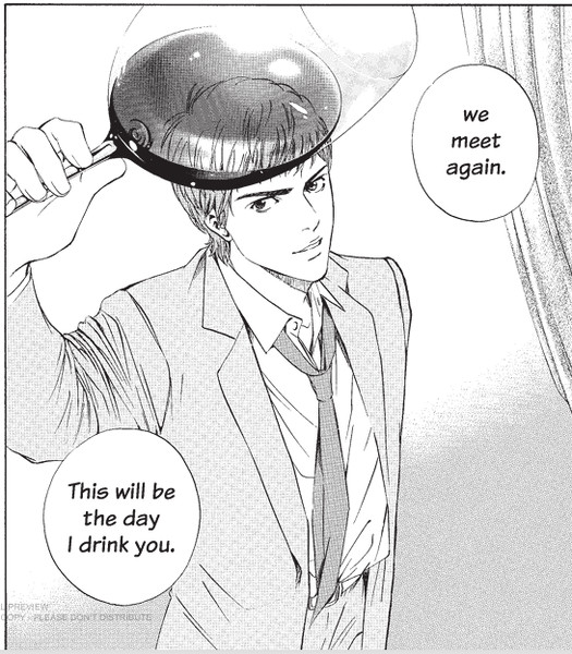 Because this is a shounen food battle manga, Shizuku and Isseigo go to absurd lengths to obtain, identify, and drink wine—including climbing the Matterhorn and digging in a desert— and, yes, their visions of people and places as they have yet another foodgasm over a specific vintage, are absolutely ridiculous. However, the key here is to learn about wine and try various wines until you find one that suits your taste. And to do that, we get to the real fun part of every arc. Let's be honest, whatever Yutaka Kanzaki chose as his Apostles and The Drops of God are out of our range and interest. I'm not getting to try them, so who really cares? I do care what white wine works best with Korean food. It is because of this series that I found that a dry Gewurztraminer was perfect with Indian food, while Shizuku saves a family restaurant from ruin…with wine!