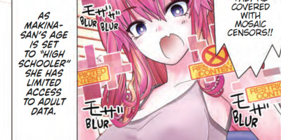 Male protagonist Eita spends most of the volume panicking and stressing about Makina's physical closeness and exhibitionism. His character isn't interesting, and doesn't develop. Makina herself is a bit more fun – especially when it becomes clear she doesn't know anything about sex at all, because her “adult filters” are enabled, which means she can't even look up sex manuals on the internet. This leads to some admittedly hilarious misconceptions, including a running joke about Eita's “prostate”. It turns out that Makina learning about sex from a BL-obsessed schoolmate probably wasn't the right educational choice.