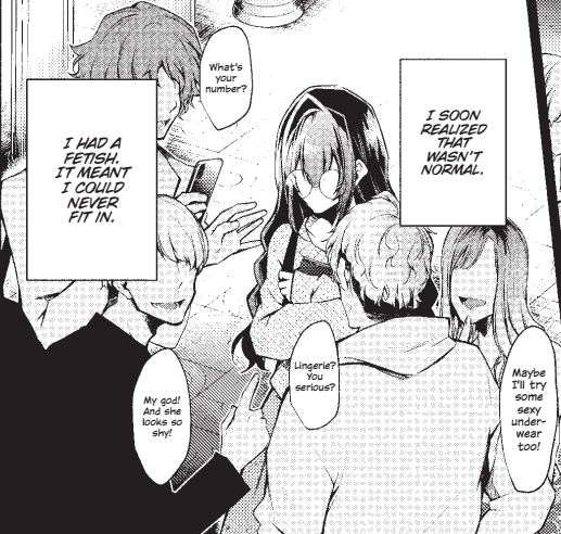 Riko's love of underwear is given more of a backstory than most whole relationships in 18+ manga. Both she and Miki come across as totally sincere and a lot innocent, considering how sex-centered the story is, but you have to like them and want to see them succeed because there is a plot, and they are trying to do something. Yes, looking at a woman in unreal lingerie in close-up detail is the point, but the premise is more than just that.
