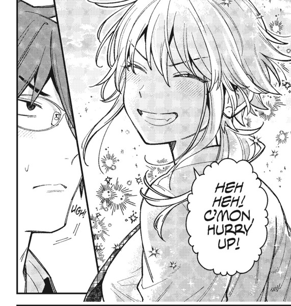 There is a little bit of teasing here from our female lead, but the only real source of drama is that you get the sense she wants to be seen as more of a girl to him, even though she's usually girly amongst her friends. This is established in the first chapter, but it doesn't go anywhere after that. Most of the volume meanders all over the place, but there isn't really a single theme or idea that carries over from chapter to chapter. This feels like a story that isn't trying to be a master of anything but instead acts as a perfect blend or mishmash of various tropes. The result is something that feels like eating a rice cracker. I'm definitely eating something, but don't even try to ask me what it tastes like because I probably would not be able to answer.