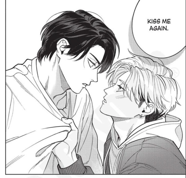 Kumazawa is a gay mechanic trying to lay low after his most recent breakup. But ever since he moved into his new place six months ago, his neighbor has been streaming around the clock. When Kumazawa has finally had enough, he confronts Koichi on his doorstep… and ends up shutting him up with a kiss. Freed from the confines of any realism (I mean, who does that?), this story is then free to go off the rails and ascribe to the platonic ideal of enemies-to-lovers. It isn't long before Koichi darkens Kumazawa's door, asking to learn how to kiss like that. But all of Koichi's videos are about being suave with the ladies (and unbeknownst to Koichi, his audience adores them for their cringiness and his obvious inexperience with the subject). Even as he is increasingly unable to deny their connection, Kumazawa tells himself he isn't going to waste his time answering the whims of an experimental straight boy. As both parties try and fail to hold themselves back, the sexual tension is exquisite. The gradual nature of their growing intimacy made for great tension and left me guessing who would make the next move.