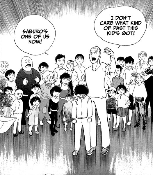 This being a work first published in 1991 and only now available to read in the US, The Pipe Machine also contains some social commentary that's aged interestingly. The future dystopia that Saburo becomes trapped in is overtly informed by the decay of the Earth's ozone layer, creating a world that's perpetually blacked out by smoke to protect humanity from the sun's radiation. While Umihara uses this setting to explore themes related to class and tribalism, I couldn't help thinking about how the ozone crisis was functionally solved by humanity between this work's first being published and it becoming available for me to read. A manga rarely makes me feel like I'm getting a peek into the past and the issues that inform the creatives of that era, and I really appreciate that quality of The Pipe Machine.
