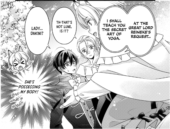 This story is a veritable kitchen sink of “rebirth” fantasies. Lune's adoptive mother is dealing with grief and chronic illness, but taking yoga lessons from a fox spirit who inhabits Lune's body starts her healing. Mana is, of course, a yogic concept, so that helps her adoptive brother gain control of his powers. Lo! And behold! The story is well on its way to fixing all the fixable things!