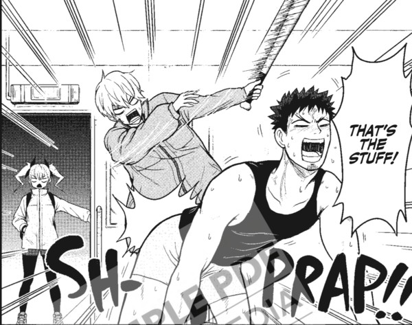 Perhaps other readers will get more out of some of the silly skits in this volume, but other than some genuine laughs in the first story where Kikoru walks into a room where Kafka's being beaten by Reno with a baseball bat to the ass (for important story reasons, obviously), I barely cracked a smile. A later scene where Mina attempts to retrieve a plushy from a crane machine, before joining Kafka on an overly-heated arcade shooting game, is fun too, but these two scenes aren't enough for me to recommend this volume to anyone other than the most entrenched Kaiju No. 8 completionist. And I say that as someone who owns physical copies of the other Kaiju No. 8 spin-off material.