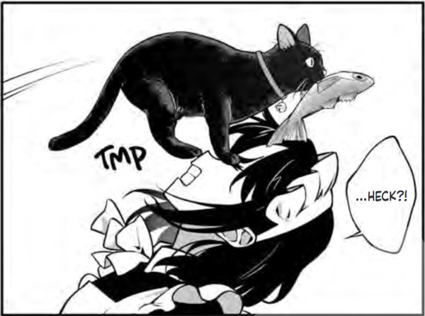 But every so often, Maid to Skate dawdles in a moment; when that happens, it returns to its roots as a loose series of illustrations. Am I enthralled by Benihana chasing a cat through vaguely European streets on a skateboard? Not in the least! But I can still appreciate the absurdity of the drawing of her flying over a crowd after going off a ramp with a baby carriage. There's so much detail in the ruffles of a maid's skirt as she does a (*quickly types “skateboarding ramp trick upside down” into search bar*) handplant that for a moment, I forget the insipid plot and appreciate the simple, pure beauty of a guy taking his two interests and mashing them together.