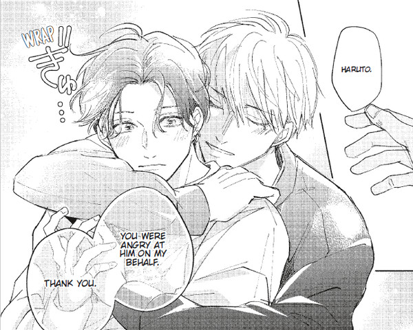 There's something wonderful about a romance that gets fluff right. Wait, I Love You is just such a book – the story is firmly focused on the two leads with a minimum of outside tension, allowing readers to really connect with Aoi and Haruto. The two are already a couple when the story opens, and the issues they face have less to do with maintaining their relationship (which is on very solid ground) and are more about how they cope with Aoi's highly visible career as an actor. Refreshingly, neither of them wants him to give it up, nor do they have unrealistic ideas about what it means for him to be in such a public-facing line of work. They're just two people who love each other and are trying to maintain their relationship.