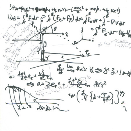The viscosity of black gloss enamel is approximately 74KU. Not only does the fleck have to overcome the forces holding it to the paint glob on the brush, it has to overcome the static coefficient of friction on the brush hair (assuming that the paint does not slip on takeoff) which is roughly .14. Furthermore, the spring constant of the brush hair must be taken into consideration, although the Colorado air pressure acting upon the paint may be considered negligible. Ergo, with the forces, both conservative, non-conservative, and those associated with the forced undamped spring movement, taken into view, a very simplistic free body diagram can be sketched out to represent the case. We must find the angle of the brush head in respect to the desk top, the initial velocity of the paint glob, and also the horizontal and vertical components of the acceleration of the glob.