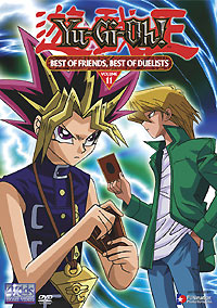 FUNimation Productions 60 min. 11/? $19.95 07/22/2003 I admit it. YuGiOh's not as bad as I like to think it is. This is the same realization I faced when I realized that watching Pokemon bounce across my screen not only entertained me, but captivated me. Besides, the show is ridiculously popular right now. Ergo, it has to have *some* appeal, right? Well, this disc certainly does. Jumping into the middle of yet more card-fighting (obviously), the first few episodes beat around the bush with your classic “gah! I need that card! Where's my card!” bit, but the last episode is what rocked my world. Yugi finds himself dueling with his friend Joey, but before he knows it, Joey whips out a powerful card—the same card that Yugi gave him as a symbol of their friendship. This particular episode struck me because in kids shows, themes like broken trust and backstabbing are seldom explored. The whole concept of working so hard to accomplish a goal, only to have it ripped up by your friend—well, it's not something you see everyday in a kids' show. In fact, YuGiOh's certainly one of the darker kiddie shows out there, and it's aspects like that that capture my interest and awe. I can't say that I enjoy this series enough to collect it, since I consider a large portion of the episodes to be rather formulaic and trite, but this particular volume really stuck out for me. Give it a rental. It's not half bad. |