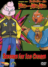 Well, now, you can have your immature humor any way you like it! Whether it's in the creatively changed English version, or the original Japanese, you can bask in the glory of green aliens, noodles, pleated-skirt-wearing men, and strange creatures that have an odd proclivity for crossdressing. Did that last sentence just intrigue you? If it did, you should check out this show, either on DVD or on TV. Don't expect to have your mind blown, though. Its short attention span is really fun for an episode or so, but beyond that, it actually gets a bit old. There's only so much “wackiness” that someone can take before they start to grow weary of it all, and for me, my Bo^7 saturation limit is somewhere around 1.47 episodes. But hey, if you have a penchant for scene after disjointed scene of rapidfire jokes and goofy caricatures, then by all means, eat this up with a spoon. You'll even get the joy of owning a DVD with a cover featuring some cone king with a giant ice cream turd on his neck. Good times.[TOP] |