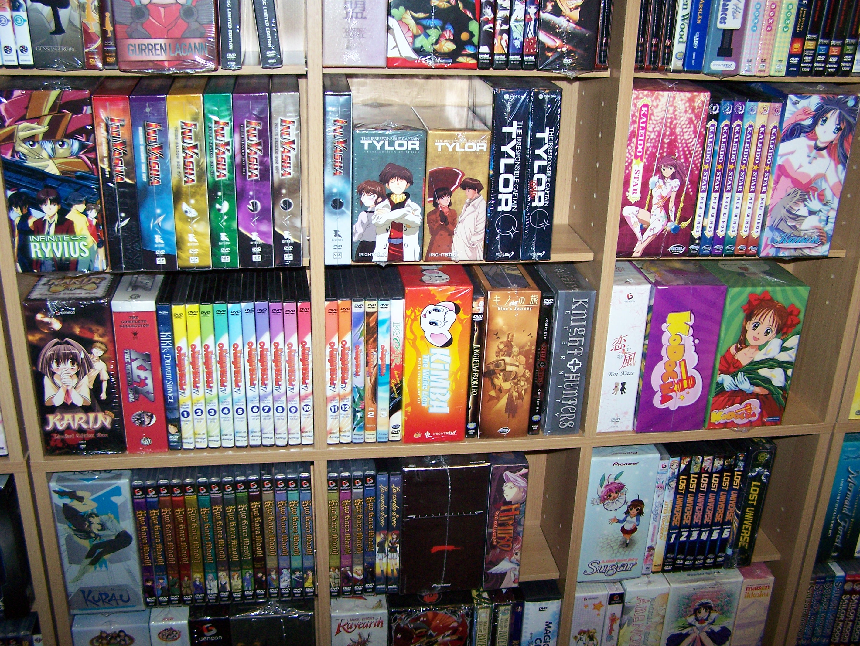 Our DVD collection contains mostly R1 discs supplemented with official R2 and R3 discs as well as R4 artboxes. All of the discs are in mint condition, and while the artboxes are turned around, each one is complete and filled. We intentionally leave the plastic around the boxes to reduce shelf wear, cutting away only the plastic in front of the box openings. The manga is all in new condition and individually baggied. We also have a variety of North American cartoons and all the Mystery Science Theater 3000 currently put to DVD, as well as video games for many consoles, all mint and complete.