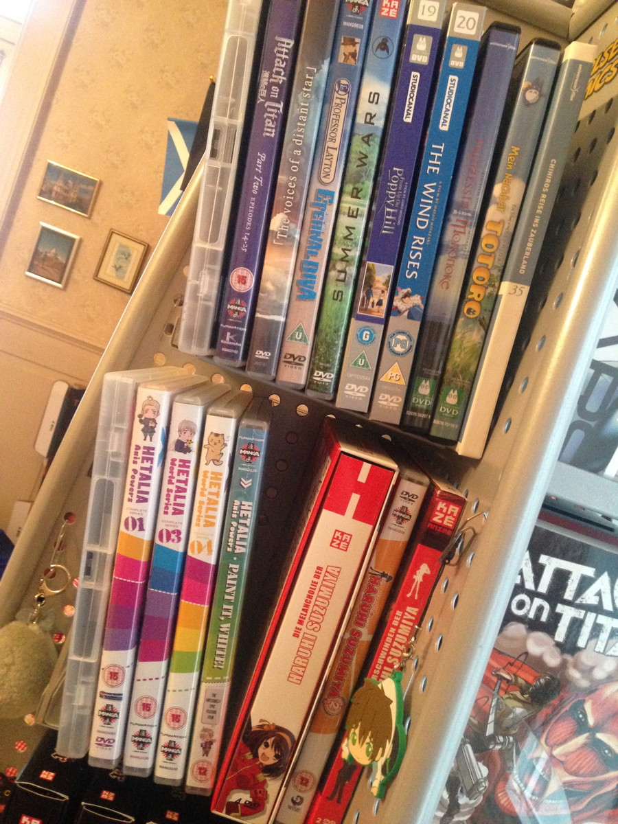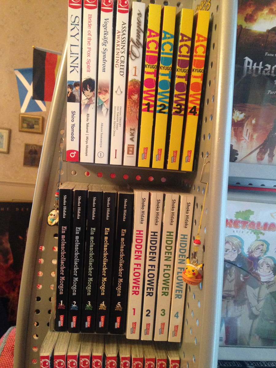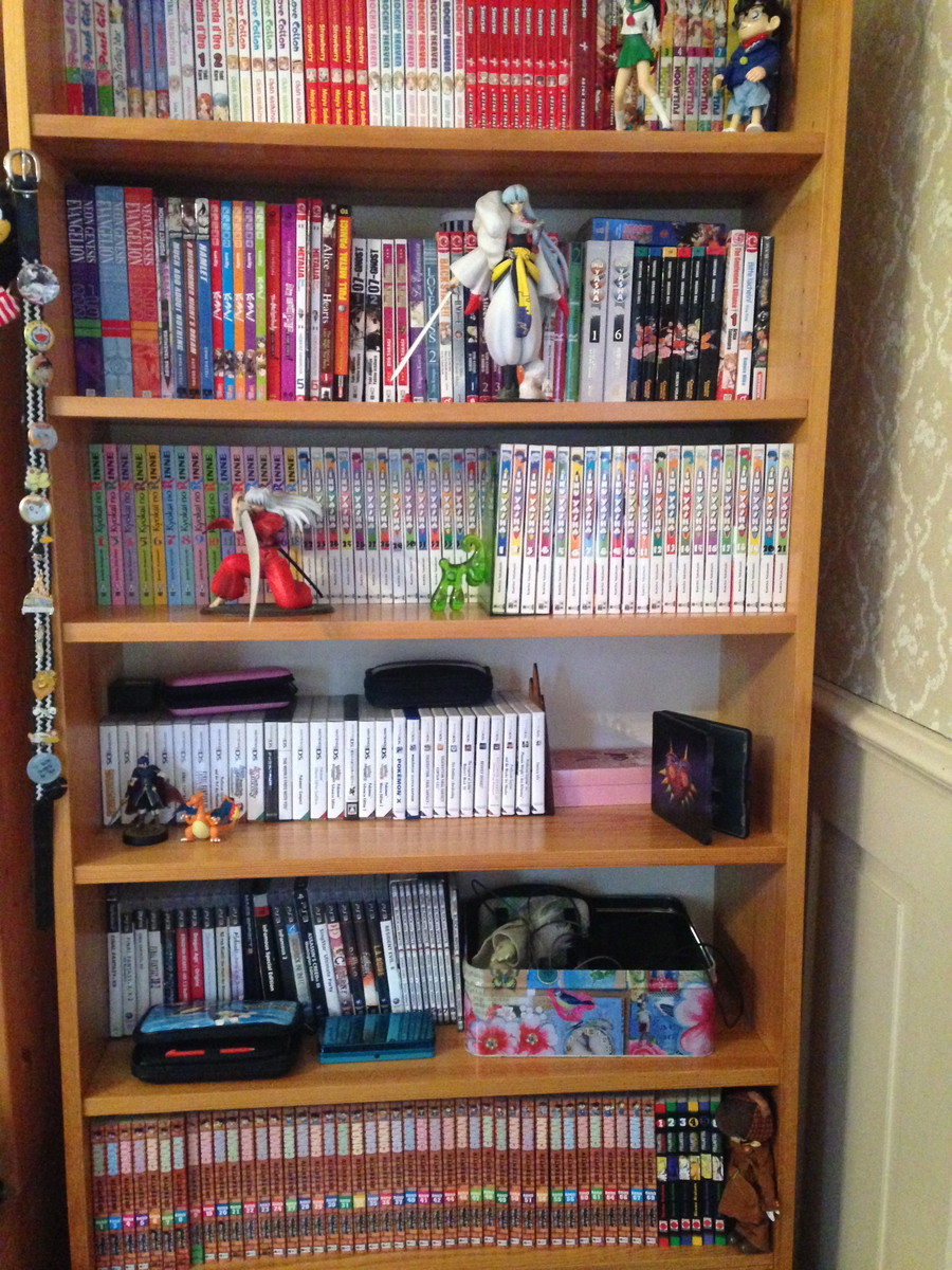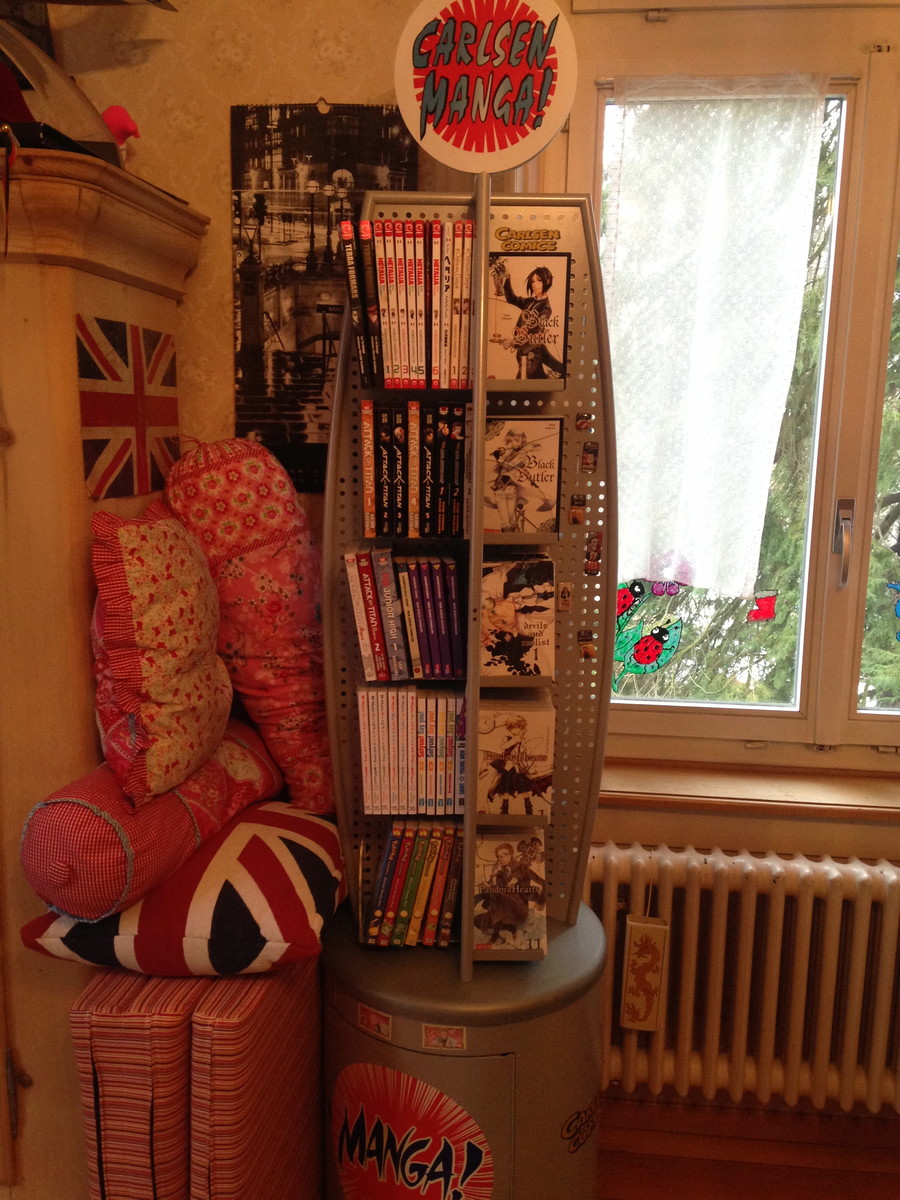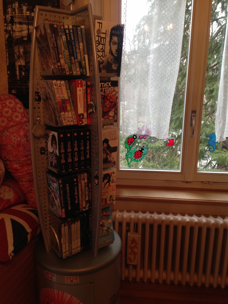 "It was nice seeing a Swiss shelf in the column two weeks ago, so I thought I'd share mine as well. I know the owner of the local comic book store, that's how I got my hands on the store shelf in the first two pictures. I use it for manga as well as DVDs. The third picture is the rest (or most of it) of my collection, along with my video games. I own mostly manga in German, but there's a great shop in Zurich that sells imports from the States, so my collection of English manga is growing steadily."