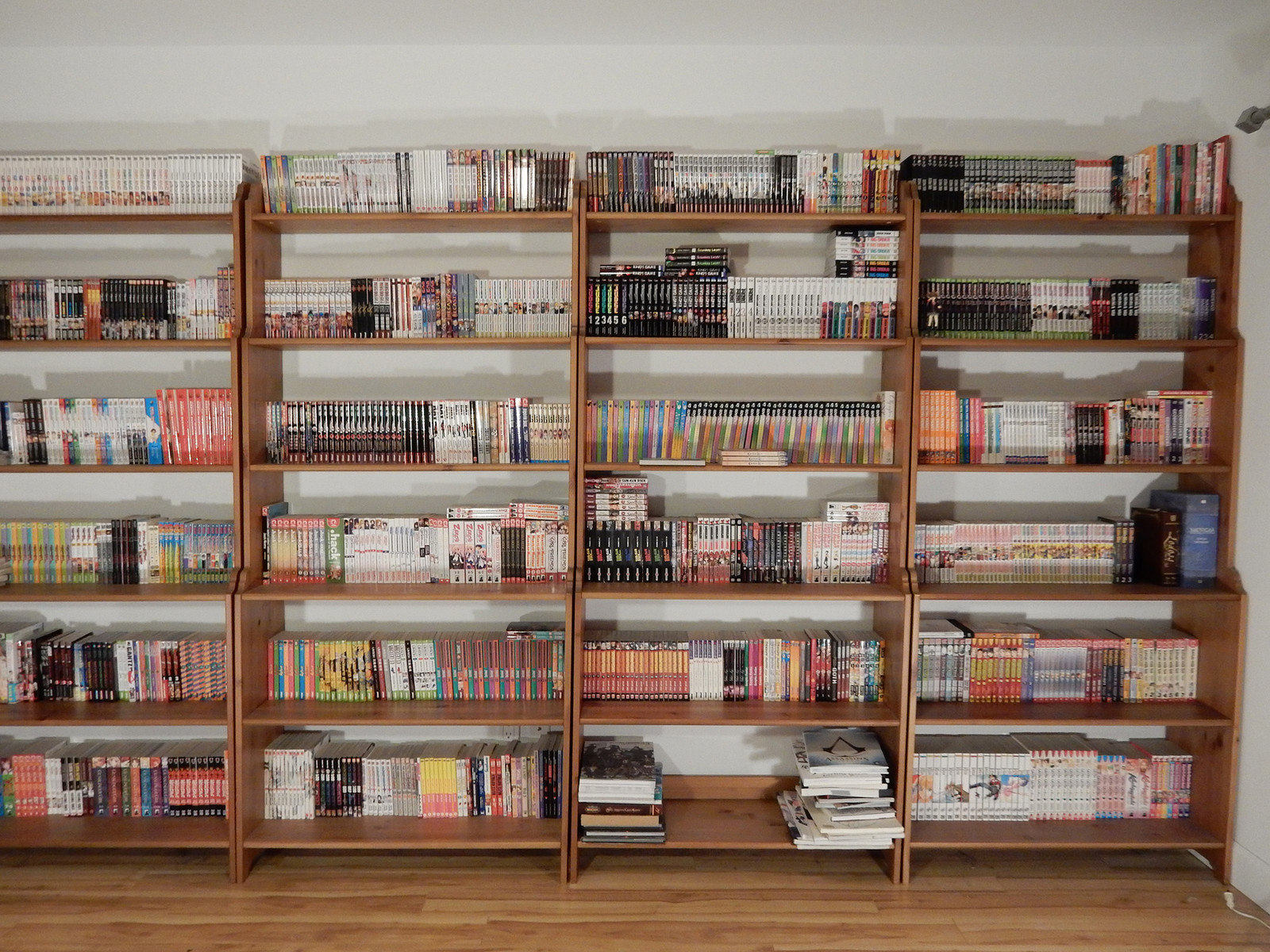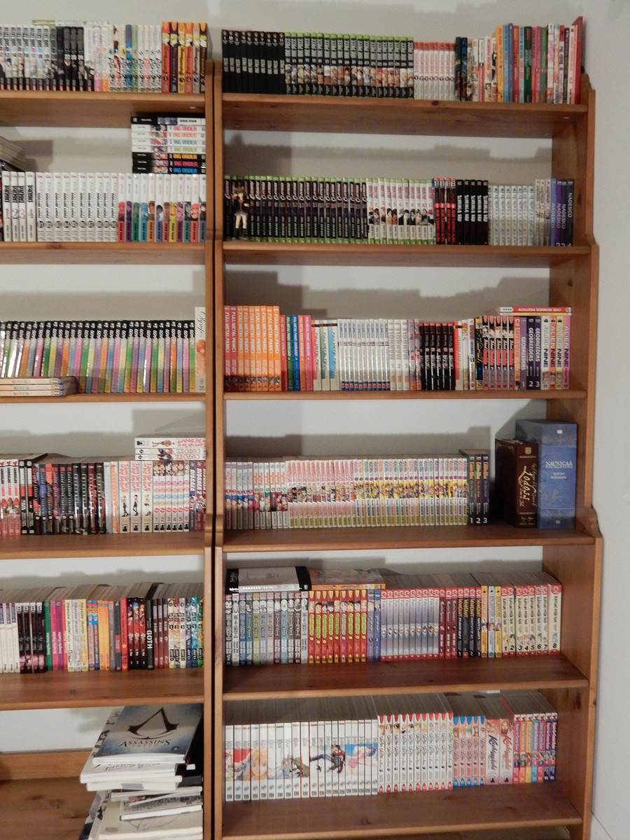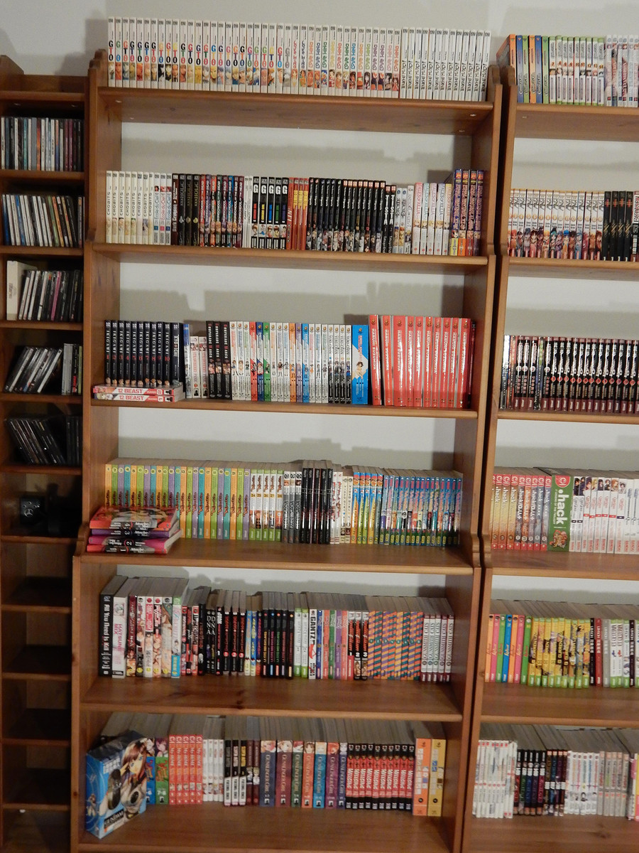 I have been buying books and anime related goods for about 17 years now (turning 31 this year) It counts more or less 1380 mangas. With some left over of what was once my DVD/Blu-Ray collection. I have mostly switched to buying figmas and such other larger figures over DVDs these days but i am still pretty proud."