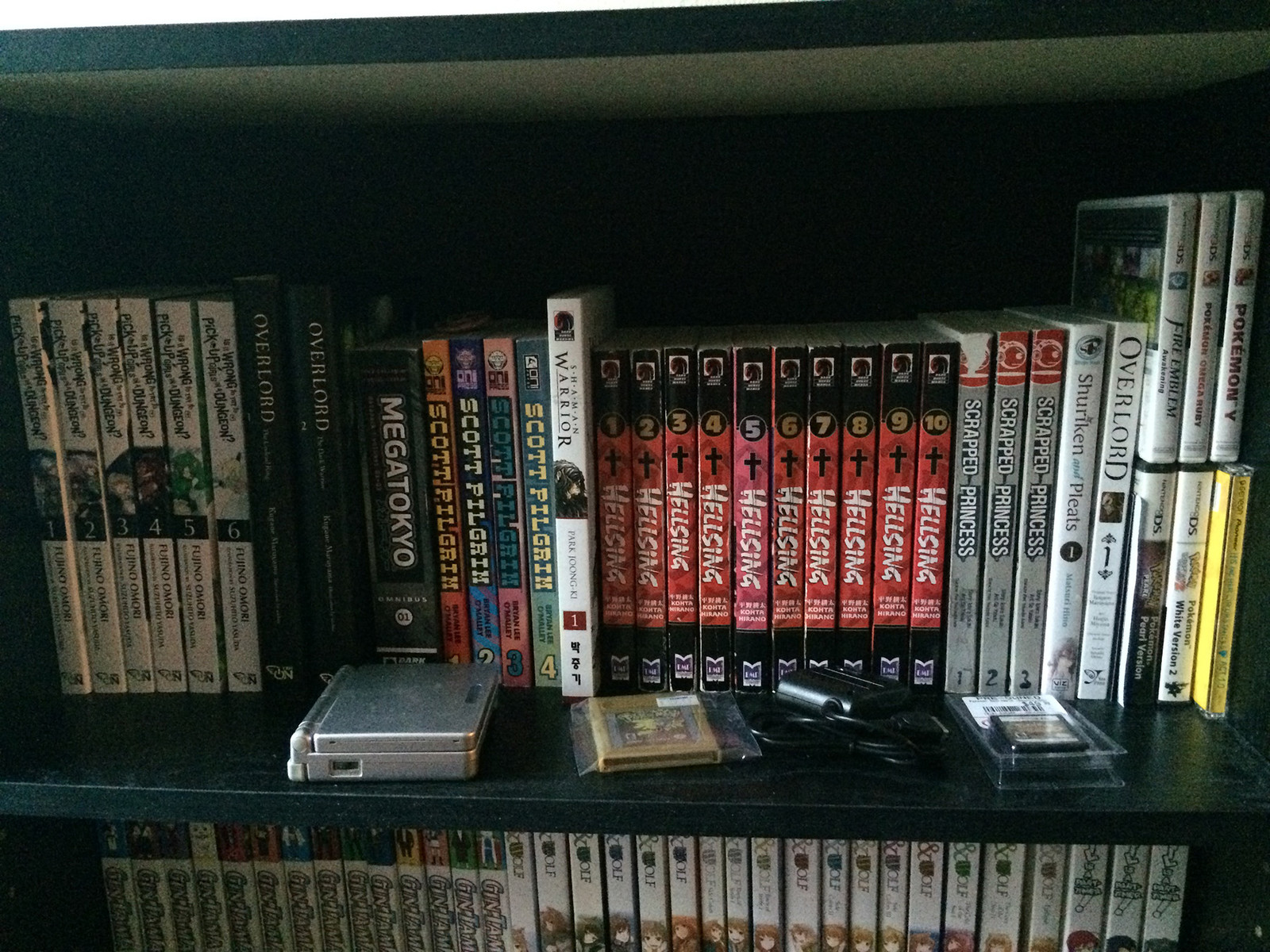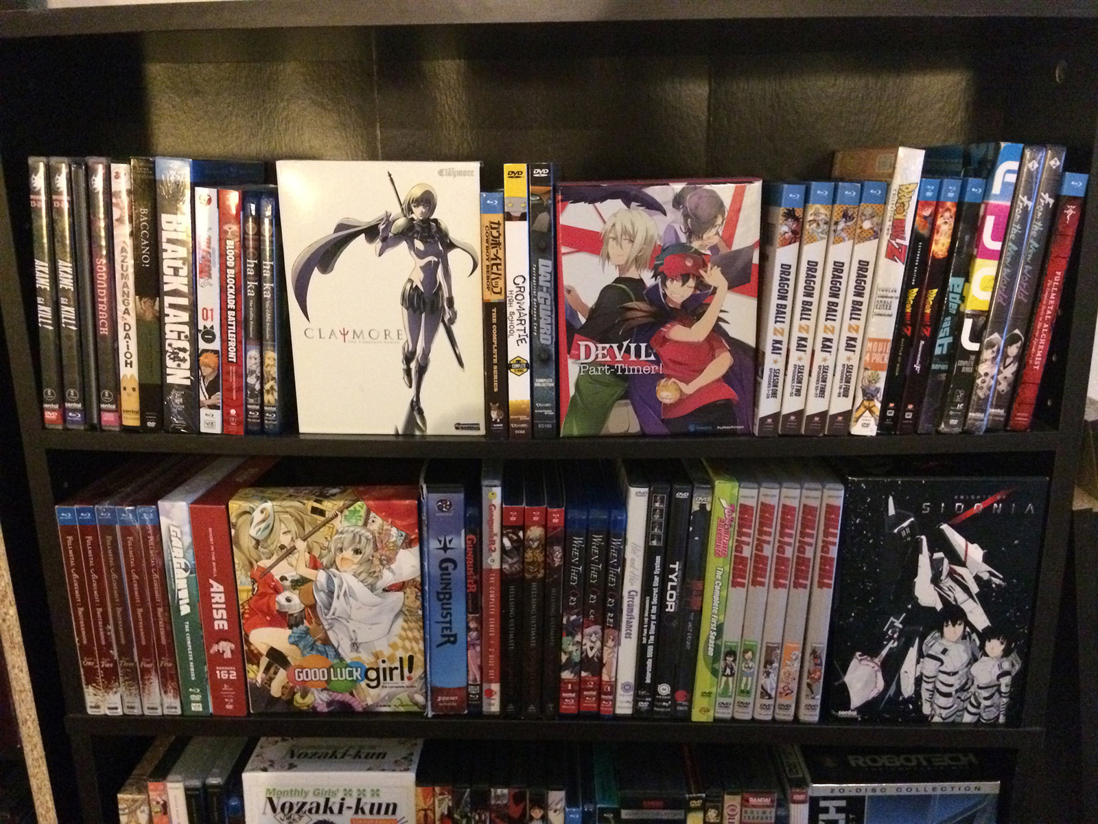 "I was introduced to anime a bit late, and watched my first anime (Fullmetal Alchemist) during a winter icestorm in 2010. Since i got my first job and apartment out of college two years ago, I've been able to collect physical media in addition to my enormous collection of digital manga. I'm pretty happy to have a wide variety of genres represented in my collection, and I try my best to only buy my favorites; I haven't had to start double-stacking yet, but it's getting close, especially with my recently acquired interest in light novels....