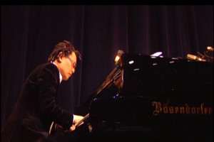 "Infection," one of Oni's most popular pieces (and the only one that draws applause at the start) returns the concert to a somber mood. You may have laughed at her awkward dancing in the last piece, but this time she stands still, telling her story of unrequited love. Arguably Onitsuka's most powerful song, this one had the potential to be the highlight of the entire concert. By beginning softly and building tension throughout, the piece give Oni a chance to showcase her vocal range and emotional drive. Alas, it falls short. Her entries are weak, and at times her voice is so shrill that it's unpleasant. Add to this a questionable piano arrangement, and you're left with a performance that doesn't come close to the album version. Despite its faults, "Infection" is the major turning point in the concert. About twenty seconds from the end, everything suddenly snaps into place. Oni finds a comfortable place in her voice, giving us a first glimpse of the rich, passionate performances that will follow. Onitsuka smiles, thanks the audience for attending, and introduces the two pianists. Then, they perform "Drifting Feather." From here the concert is remarkably better. Onitsuka's entrances are more confident, the pianos provide their first 'wow' moment with a poignant bridge part (you'll want surround sound), and even the lighting, a soft striped pattern, complements Oni's outfit and the mood of the piece. Onitsuka drifts across the stage, her voice resonating in perfect balance and tone. Hal-Oh Togashi steps off stage for the next piece, "Memai," leaving Onitsuka with solo piano. It's the most straightforward song so far, a simple and elegant love poem. She's not pushed as much as the previous two songs demanded, but it's better this way. She's in total control, bringing the audience full-circle and setting us softly into the interlude. No wonder this song was used in a commercial for a beauty salon. |