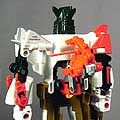 For the most part, each robot is unique and serves a purpose when creating a larger whole. Two robots each become an arm, two each become a leg, one becomes the mid-section, and another becomes, well, the butt. This one is pretty unnecessary, if you look at the back of the combined whole, it just sort of hangs there awkwardly. I'm sure this robot is teased often. "Hey Superion, there's a crumpled-up helicopter on your ass." Such is the wonder of the 1980s toy design aesthetic, the same template which was also used to create several other combiner teams.