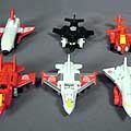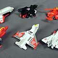 From left to right: Skydive, Fireflight, Storm Jet, Silverbolt, Air Raid, Ro-Tor.