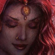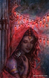 AML: In the case of Lilith, the focus is more on the symbolism with the emotional imagery supporting it. The character of Lilith is based on the Judeo-Christian myth of the same name, who has connections to the Black Madonna as well as the astrological Black Moon. She's also the opposite of the character of Selene, or "Luna", who was also depicted in Endymion. These polar opposites embody the classical dichotomy of the Feminine, as being depicted as either a "virgin" or a "whore". Lilith is a shamed female figure, but she also possesses a great deal of strength. As a result, there's emotional tension between her and the “Adam” character in the picture. The red lanterns suggest a "Red Light District" and the hair shrouding her face as her robe falls off support the disgraced whore side. But the defiant way she holds her head divulges her strength as Adam's first rebellious wife.
