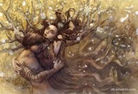 AML: This piece is based on the movie of the same name by Darren Aronofsky. I started with a concept from the film where it's heavily implied that the Tree of Life and the protagonist's wife are linked, and then went through a lot of thumbnails to get to this image. They never explicity stated this connection in the film, so I felt like I wanted to represent that tie in my work. This led me to make the connection to the Greek myth of Apollo and Daphne where the nymph is transformed into a tree to escape Apollo's amorous intentions. And as the movie drew heavily from Mayan mythology, I had the roots of the tree-woman forming into a dragon to imply an influence of the Feathered Serpent god. The overall look, coloring, and textures are a tribute to all the gorgeous cinematography of the film.