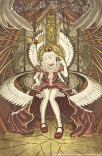 ANN: I sense a bit of the "regal" mystique of series like Princess Tutu and Utena in the drawing of Azalea. Which element of her clothes and the background did you construct first and why? What kind of aspects of her character did you want to convey with this piece?