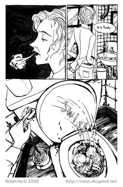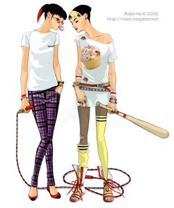 Robin Ha is one good example of this. She was captivated by the manhwa of her birthplace, Korea, when she was little and also took an interest in manga. Today, Ha now resides in New York City where she works as a fashion illustrator for Polo Ralph Lauren. The high profile clothing company is just the latest in a long list of big name companies that have recruited Ha for her artistic skills. In some of her works, the casual observer can see some of the manhwa influenced qualities of her style. However, a closer glance at her profile yields another interesting discovery: Ha's work is not just limited to one style or mode of presentations. In fact, her work runs the gamut - from sharply detailed fashion design concepts to darkly shaded tales of what really happens behind the scenes at a fast food restaurant. "It's hard to pick a specific work that represents my style," admits Ha, who says that she still can't pick a favorite style after working with art for her entire life.