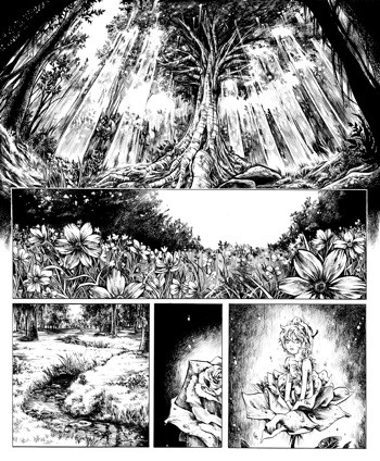 Although moving to Las Vegas wasn't much of a change for Annie, the cross-country move to Georgia and the SCAD program proved to be a radically different experience. After getting acquainted with professors and friends at her school, the exposure to a vast array of artistic styles inspired Annie to make more changes to her work than she ever had before. Professors pushed her to explore other techniques and adhere to tough deadlines - a new challenge for someone who had previously done art on her own schedule. One piece in particular, Back to Nature (pictured at the top of this article), was a major undertaking for the artist. "I was never asked to add so much detail and inking to environments and backgrounds before," says Annie, whose final version of the piece earned praise online and from her professors. Annie hasn't been shy about sharing many of the assignments she's completed on the same Deviant Art gallery where her other art is. While one might expect the assignments to look awkward among the more anime-influenced pieces in her portfolio, they seem to speak to and reflect the changes that Annie has made to her own sequential manga; Annie's original story No Name Cafe has been the source material for both school assignments and her own private work.