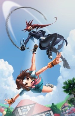 The answer came in the early nineties, when a friend showed Omar the Satoshi Urushihara OAV Plastic Little. The art style appealed to him instantly, and it wasn't long before he would gather with friends regularly to watch untranslated episodes of Ranma 1/2 that a friend taped from Japanese TV. Although anime appealed to Omar, changes to his own art style were gradual at best. That would soon change, however, when he first saw the OVA anime Gunsmith Cats and You're Under Arrest. A fan of cars since his early years, Omar describes the detailed renderings of cars in the work of Kenichi Sonoda and Kōsuke Fujishima as an eye-opening experience: "The level of detail in [Sonoda and Fujishima's] work influenced my style a lot... it drove me to strive for greater, sharper detail in all of my work." In terms of anatomy and muscle structure, Omar was most inspired by the work of Capcom's artist team and the art from the Street Fighter game series. Although many North American artists in the comics world were taking cues from the "superhero" comic genre when he was growing up, American comics never appealed to Omar ("I've never owned one," he admits). Instead, Omar felt more in tune with the focus on character development and storytelling at the center of many manga. "Masakazu Katsura's [I"s, Video Girl Ai] work was a huge influence on me," says Omar, who describes his exposure to anime and manga as a somewhat liberating experience. "It made me feel like it was okay to draw cute, simple things - and it showed me that there's a market for it."