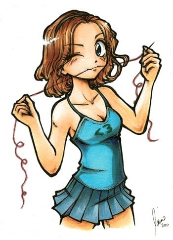 Inspired to pursue a future in art, Jamie enrolled in the Media Arts and Animation program at the Art Institute of Phoenix with the hope of learning how to make 2-D animation. The program did have a number of benefits, including the opportunity for Jamie to work on life drawing and character poses. Still, even though she completed the coursework with little difficulty, it wasn't long before she realized that the field of animation didn't offer much creative control. Realizing that the chance to make her work come to life in the world of animation was slim at best, Jamie decided to head for Japan. Upon arriving in 2004, she took a job at an English school - a common line of work for foreigners in Japan - and soon got tired of it. The job offered very little in the way of creativity and inspiration, and the fact that Jamie didn't have a base of friends in Japan yet made things even harder. Fortunately, nine months after she took the job, she was able to move on to a new one - this time, teaching English to elementary school students. The new job, while a lot more fun, was also strenuous, and it still lacked the kind of qualities that Jamie sought. She got another step closer with another teaching job, this time at DHU, an art school in Akihabara. While she was still an English teacher, the presence of artists and an art focus helped rejuvenate her senses. Despite all the problems she faced, in the four years Jamie had spent in Japan working, she built up a group of friends and only went back to the United States to visit twice.