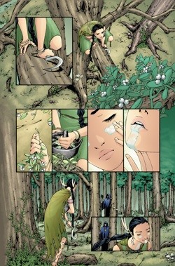 So from that, I chose the panel count and how to lay it out and what angles and all that. I excluded the transitional running-through-the-woods part and instead started with a close-up and zoomed out to an establishing shot, since I like opening new scenes that way. But of course, all this was in the thumbs and Matt's not afraid to tell me if something doesn't work for the story--he's the writer!