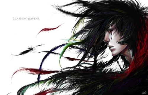 Vusc: I get very inspired by all sorts of elements - especially things that have texture. Many of my drawings will have feathers, branches, cracks, wrinkles, etc. I like to have a sense of 'touch' in my works. Sometimes the feathers contrast and balance the edgy style that I have. Also, feathers can represent an angel (religious) or a bird (biologically), which are things that I like the viewer to interpret themselves. But out of all the features I draw, I really enjoy drawing feathers the most - which is why I draw them very often! (laughs)