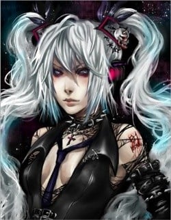 Mana's approach to art could also be described as a "departure" of sorts. Most of her work begins as a sketch, but instead of defining the lines next, she instead prefers to add color before adding lines accordingly. "It's a bit unusual," admits Mana, "but if I have line art before I color, I feel restricted – as if I am coloring in a coloring book. I like to color outside the lines, and I feel more free when I am coloring first. That way, the lines help [the drawing] stand out, and make it look more crisp." Mana's coloring style lends itself well to the characters in her works, who often have a dark, mysterious look that echoes elements of video game art, manga, and digital realist art. "I think of what I want in terms of mood first," says Mana, who often has a back story in mind for the characters in her illustrations. For portraying these characters, she likes her drawings to reflect movement; hair flows in varied directions as the airbrushed colors and tones give the drawings body. Although she works digitally, she uses an unusual set of brushes in Paint Tool SAI to obtain the right color and effect. "A few artists in Japan make original brushes [for Paint Tool], so sometimes I use those," says Mana, who visits both American and Japanese sites regularly to look for tools and inspirations for pieces.