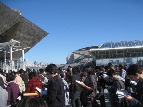The line: Manga fans crowd the deck of Tokyo Big Sight |